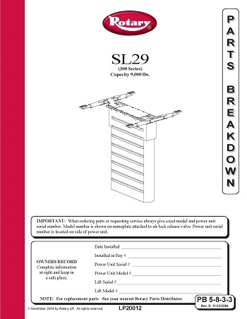Rotary Lift - Service Parts