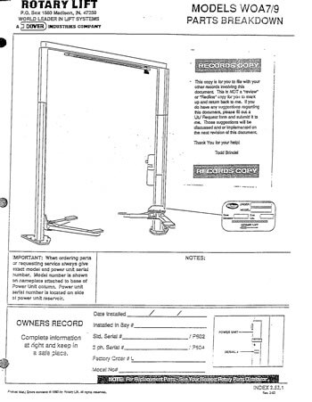 Rotary Lift - Service Parts